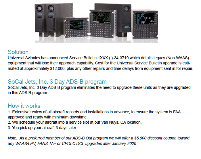 SERVICE BULLETIN! Impending GPS Approach Capability Loss April 7,2019.